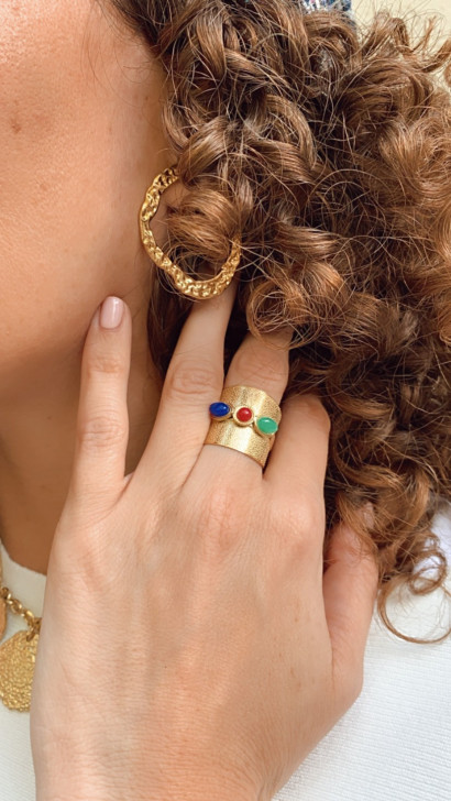 Bague en acier inoxydable pierres vert/rose/bleu